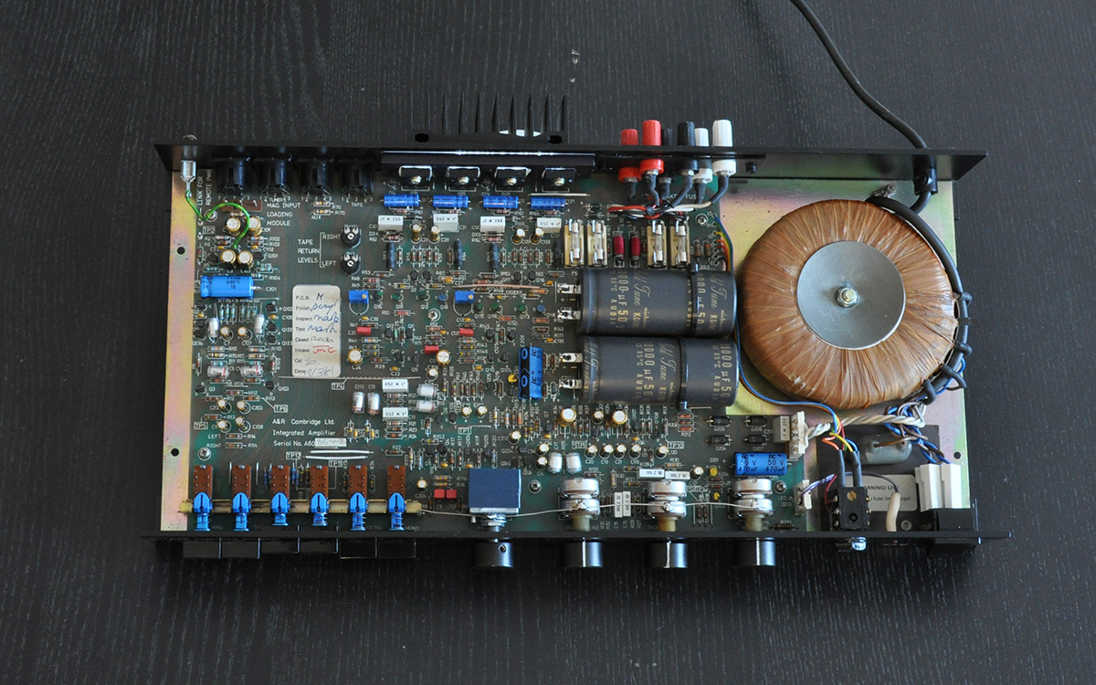 El modelo que tengo en el laboratorio es parte de la segunda serie y es el que prefiero sobre todo porque a partir de la siguiente serie A&R Cambridge dejó de usar transistores en la etapa phono en favor de un circuito integrado, que aunque de excelente calidad ( NE5534), ciertamente es inferior al excelente esquema original que se hizo con 5 transistores por canal. Otra característica, común en esos años también a otros amplificadores, especialmente ingleses, es el uso de conexiones DIN para las entradas.